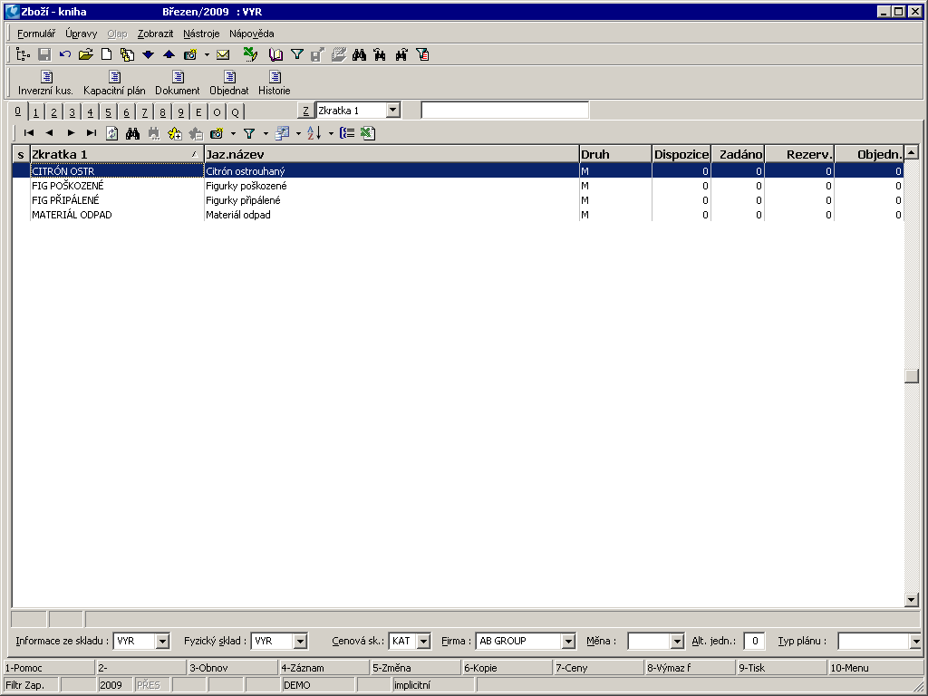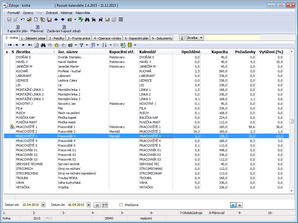 The function offers the opposite view of the capacity plan of workplaces. It displays resource utilization for individual periods. The function is available from the Workplaces book by using Shift+F7 keys.