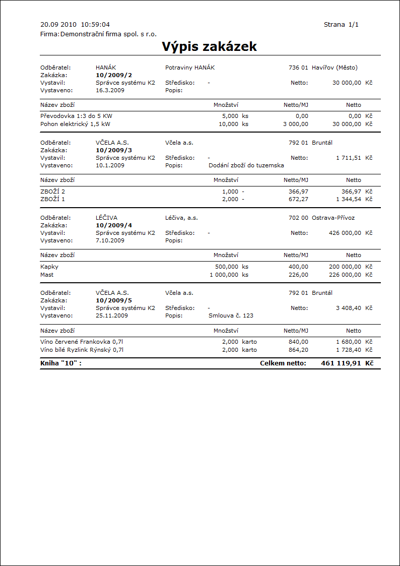 Popis sestavy: Zakázka odběratele.