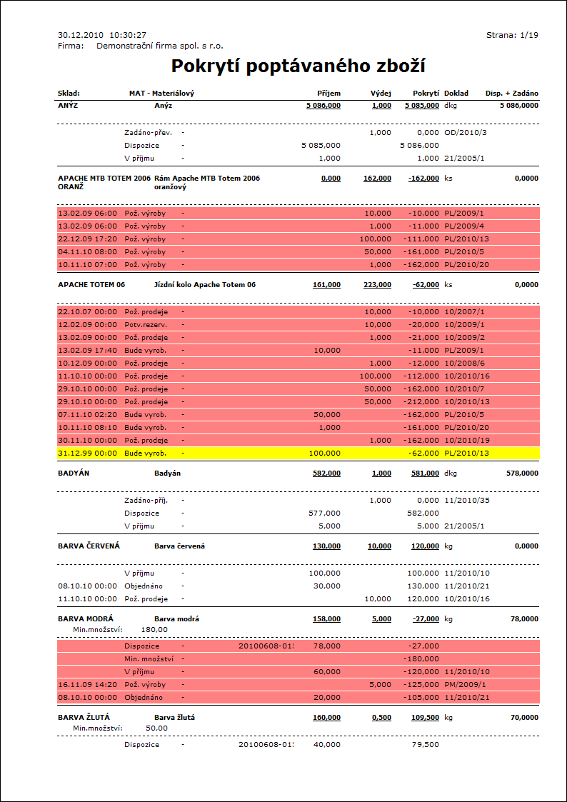 Popis sestavy: Katalog zboží s informacemi o ceně, množství na skladě a objednaným množstvím. Zobrazovaná cena odpovídá aktuální prodejní ceně pro cenovou skupinu či odběratele dle nastavení polí Cenová skupina, Firma a Měna v dolním panelu v knize Zboží. (Cenu lze zobrazit ve sloupci Cenová skupina ("CFDealC")).