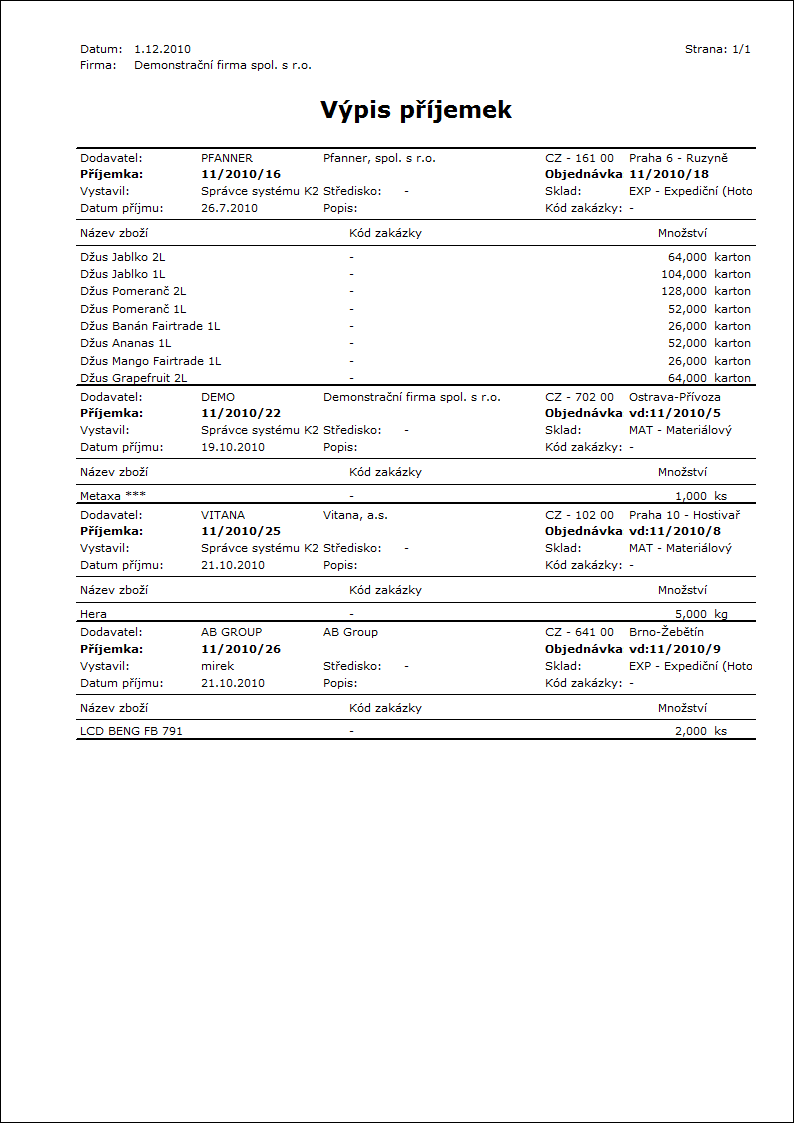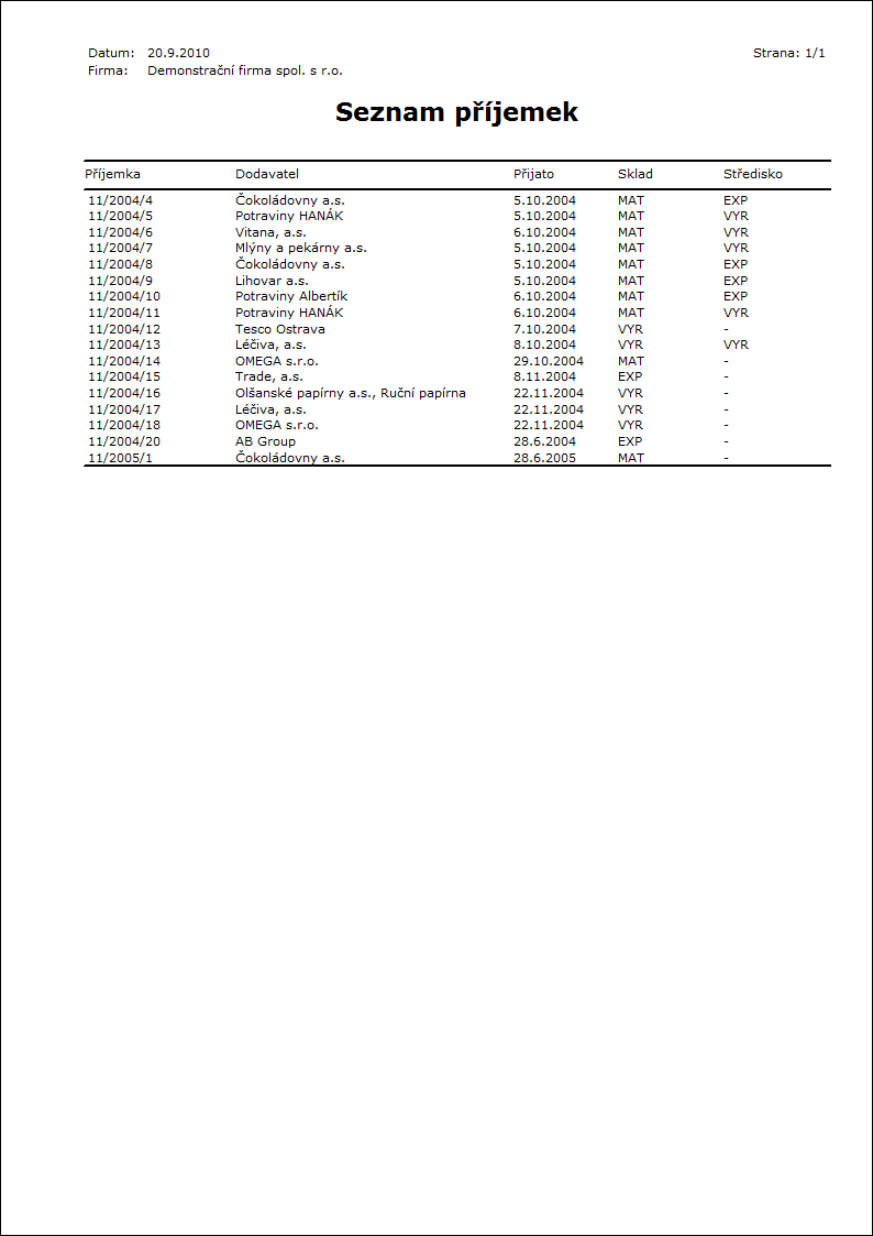 Adresa ve stromu: [Nákup / Zásobování][Zálohy poskytnuté][Tisk dokladů - seznamy] |