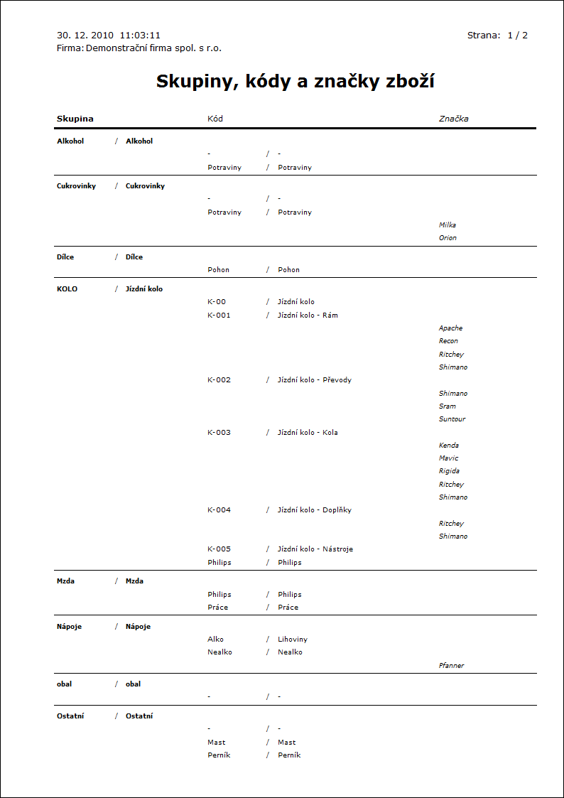 Popis sestavy: Zobrazí obraty zboží po periodách a to v třídění podle Skupiny a Kódu zboží. Interní obraty (převody v rámci jednoho skladu, respektive mezi sklady jednoho sumačního skladu při zpracování nad sumačním skladem) se nenapočítávají. Vždy se zobrazuje 12 posledních period (dle nastavení parametru "ColumnType" a "TurnoverToDate"). |