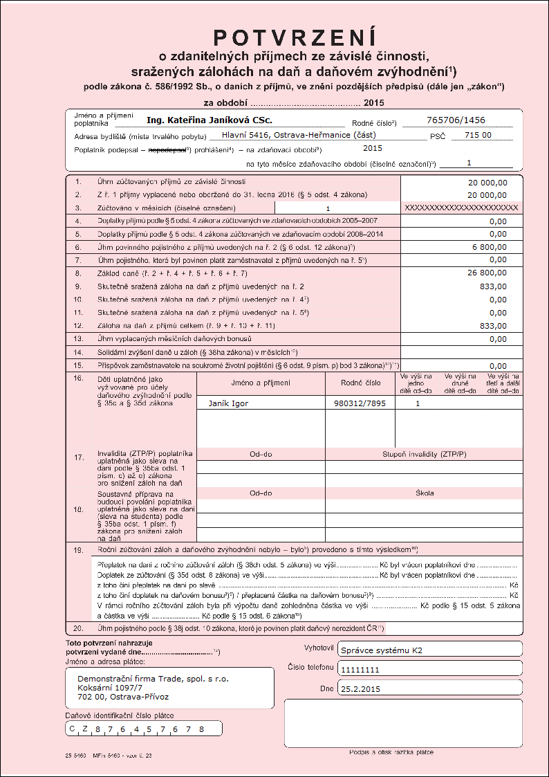 Adresa ve stromu: [Mzdy] [Pracovní vztahy] [Doklady] |