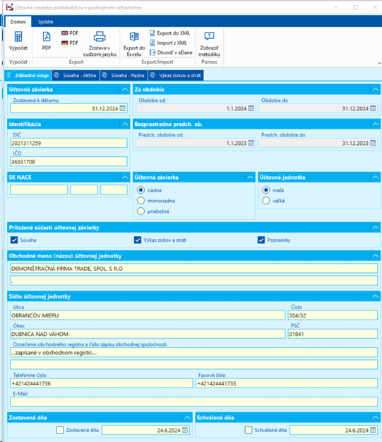 Obr.: Riadky ekonomických analýz - záložka Základné údaje