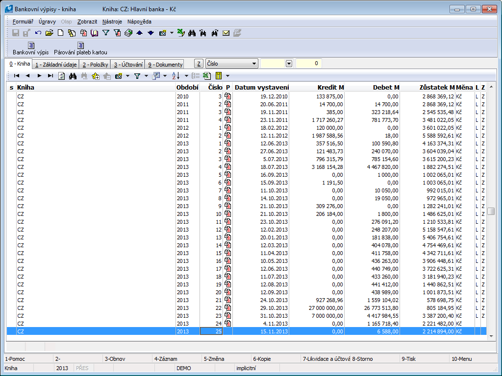 Example of bank statement for more accounts. Each following line no. 20 in this bank statement means a different bank account.