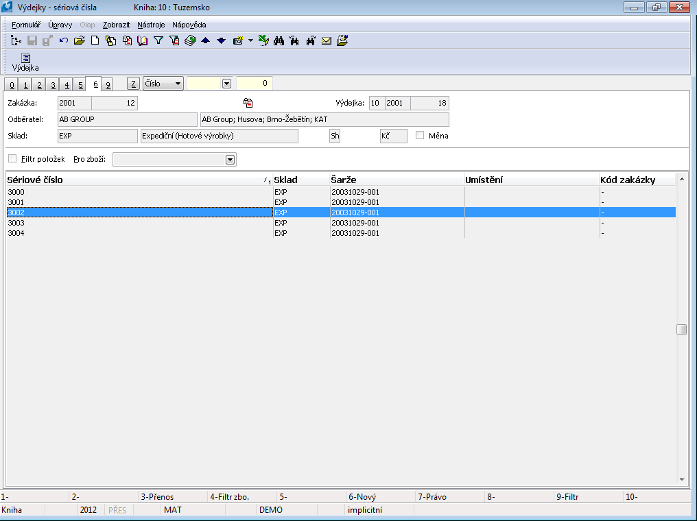 - the serial numbers in stock are not updated upon confirmation. After that, it is necessary to run the Consistency of Serial Numbers function on these documents. See the detailed description in the Administrator / Consistency chapter.