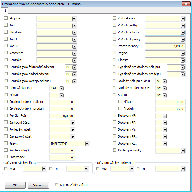 Customer accounts DR and CR. The fields are used in case when you use more analytical accounts e. g. for inland customers. In setting of the Books of sale in , then we do not fill out the Dr account for advances and Cr account for advances. When issuing documents, the advances in from will be added to the invoices in from Suppl./Cust. Card and not from Books of Sale. On the new Suppl./Cust. card will automatically fill out an accounts entered in own company. |