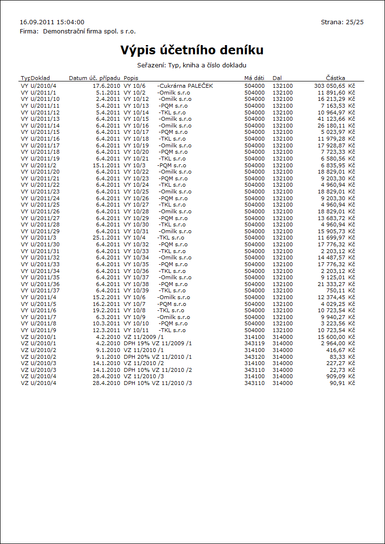 Popis sestavy: Zobrazí soupis daňových dokladů. Pokud jsou vyplněny parametry BasicRate a DecreaseRate, hodnota těchto parametrů má přednost před implicitními hodnotami definovanými v sestavě. |