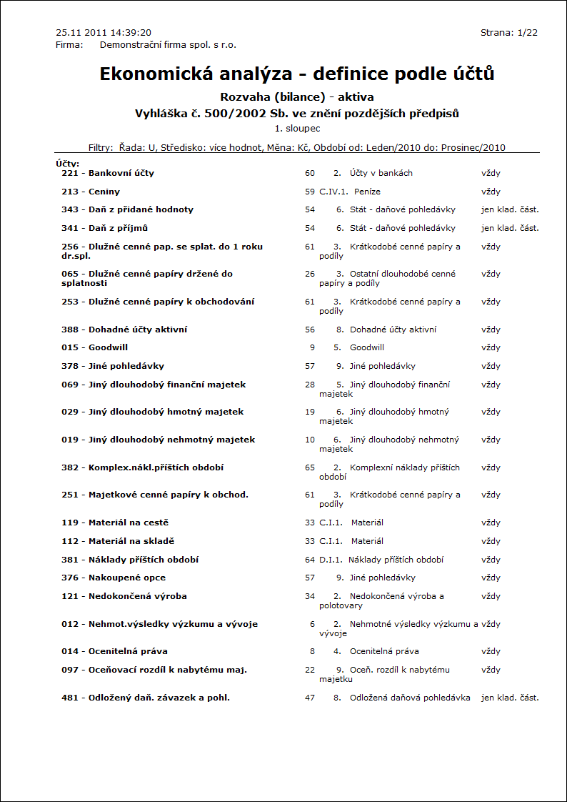 VatAccount - 343. Účty, které se zobrazí v sestavě. |