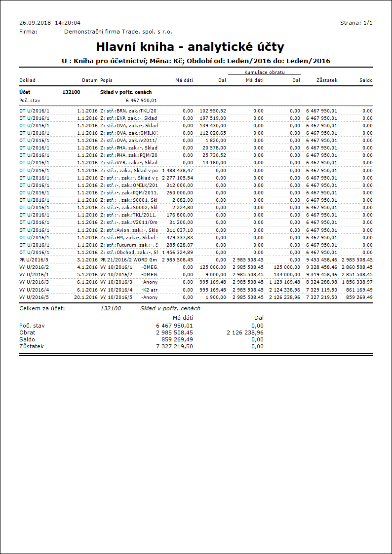 Popis sestavy: Sestava zobrazuje seznam skladových dokladů s datem 1. potvrzení (u převodek 2. potvrzení) v zadaném období v setřídění podle účtů, na které by doklady měly být zaúčtovány (dle účtu zadaného ve skladu v druhu účtování nebo v poli Účet). Používáme ji ke kontrole obratů skladových účtů. |