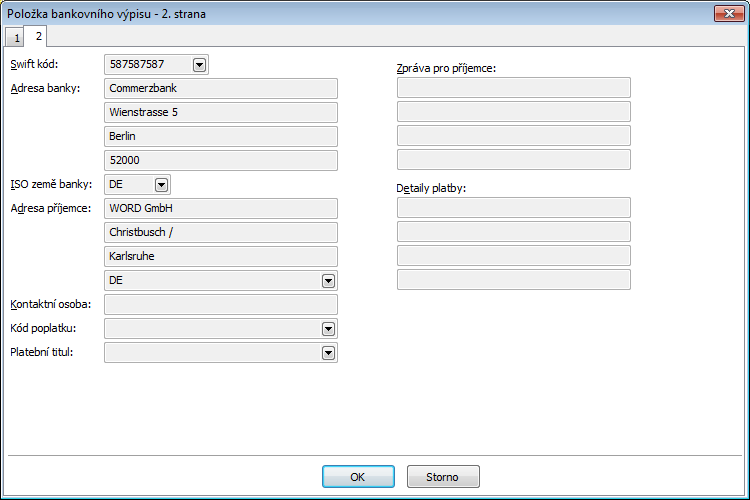 On On the 2nd page of the bank orders are given the basic data relating to the individual items of the bank order.
