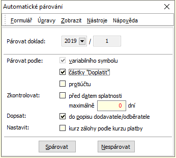 If we want to keep the VS in the statement while dividing payments into several invoices, we need to check the Keep VS in the statement button. It is in the right part of the form next to the Divide button. It is possible to easily access it in the form Processing the bank statement and it is according to the KeepStaRefNo parameter.
