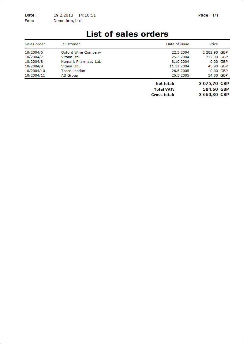 Address in the tree: [Sale / Processing of Sales Orders] [Sales Orders] [Print documents - Lists] |