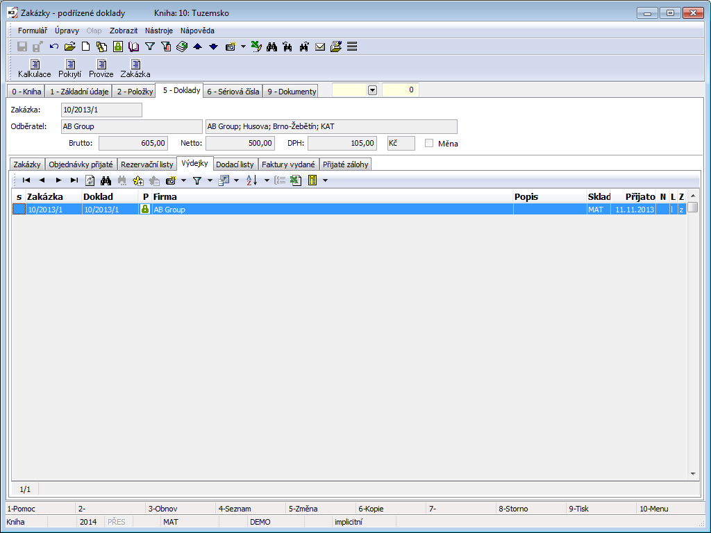 A list of all the documents linked to the appropriate superior document is stated at this page. Documents are divided into the individual tabs. It is possible to switch into these documents by using the key combinations Ctrl+I, Ctrl+L etc.