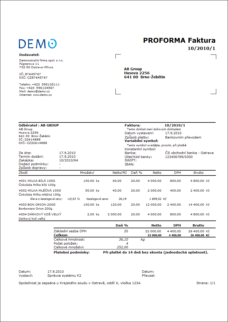 Discount - Ano Ano - zobrazí slevu zadanou v položce. |