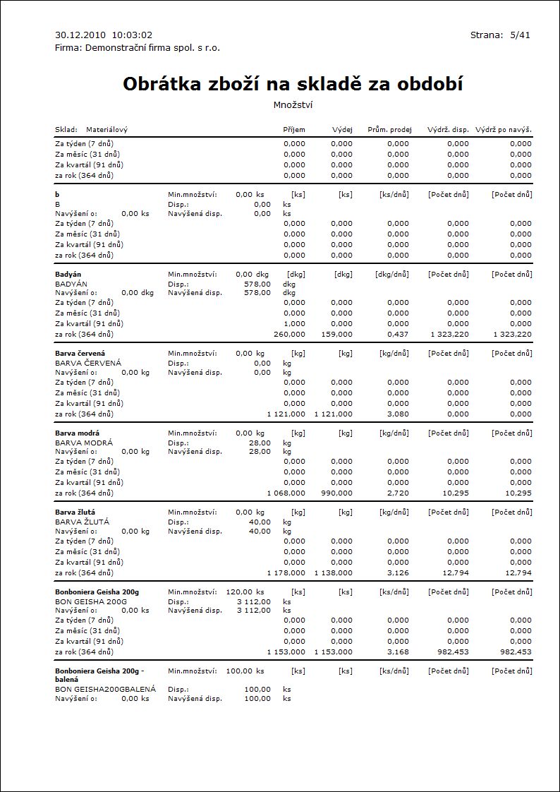 Popis sestavy: Přehled zboží podle dosaženého obratu - setříděno sestupně. |