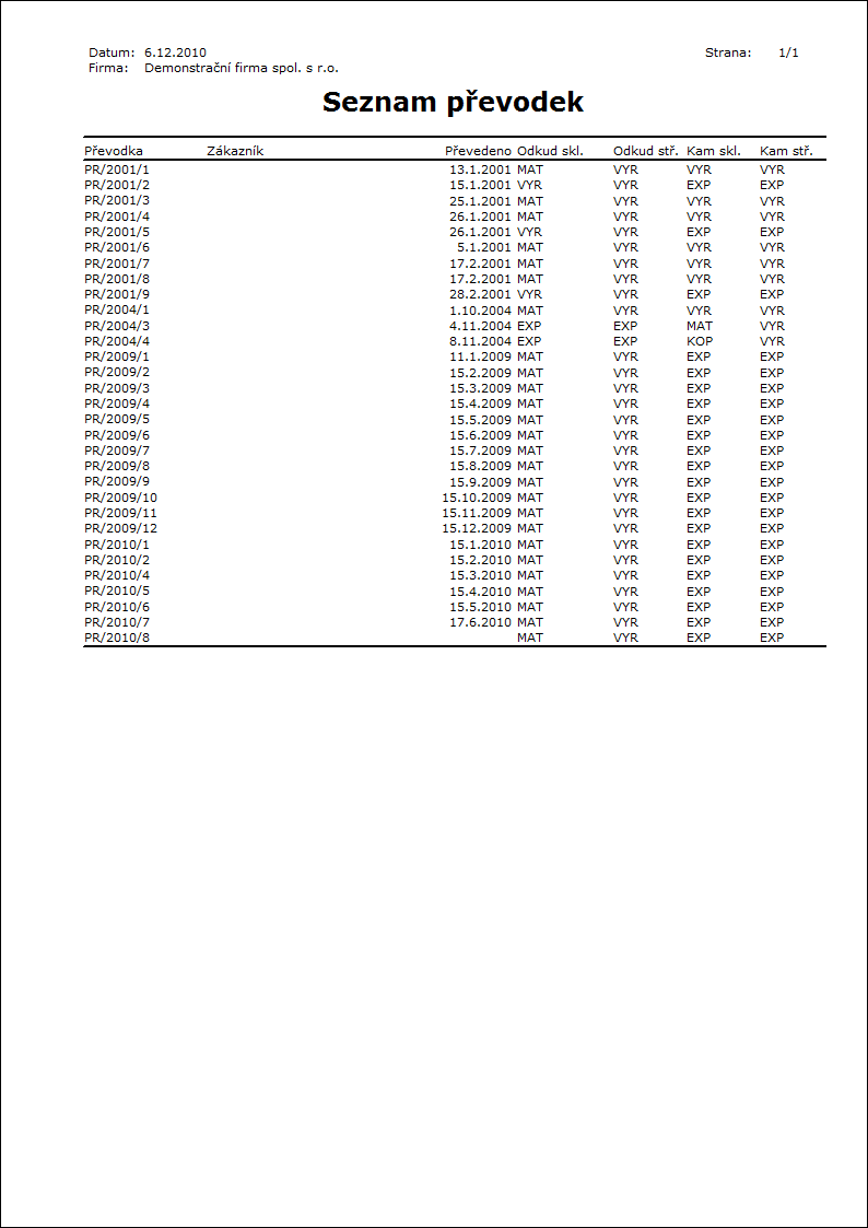 Popis sestavy: Sestava kontroluje na skladových dokladech shodu mezi hlavičkou a položkami a to pro tyto údaje: datum potvrzení, sklad a storno hlavičky versus nestornované položky. Sestavu lze využít při hledání problémů ve skladové evidenci či účetnictví. |