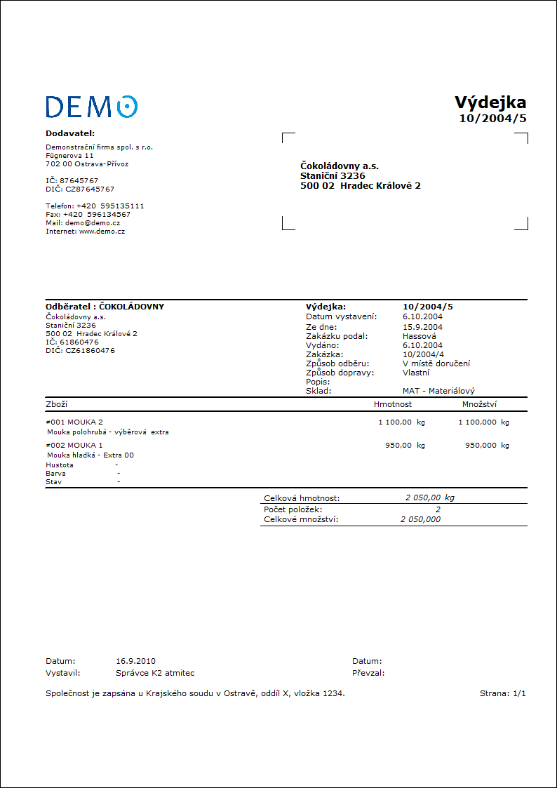 ShowFirmAddress - Ano Ano - v záhlaví sestavy zobrazí adresu vlastní firmy. |