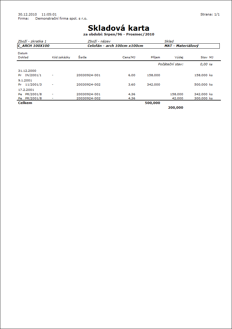 Skladová karta (kusy / ceny)