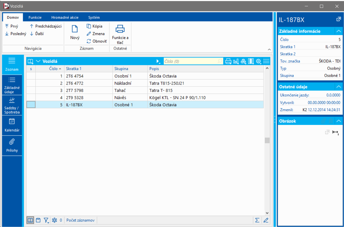 Na strane základné údaje karty Vozidla sa taktiež uvádzajú technické parametre vozidiel.