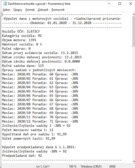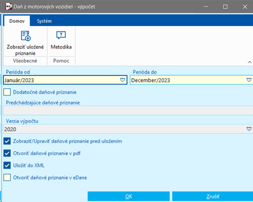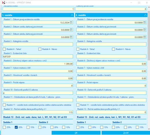 Priznanie k dani z motorových vozidiel - výpočet a export