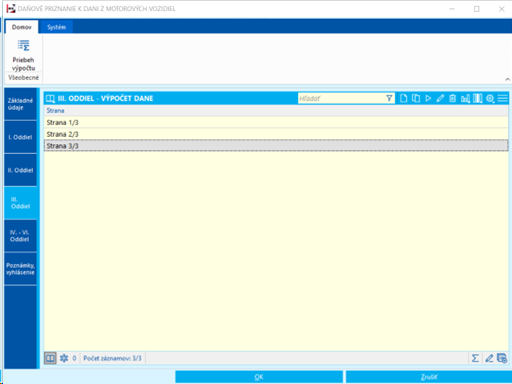 III. ODDIEL – VÝPOČET DANE (informácie z karty vozidla)