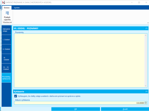 Obr.: VII. Oddiel priznania k dani z motorových vozidiel s vyhlásením
