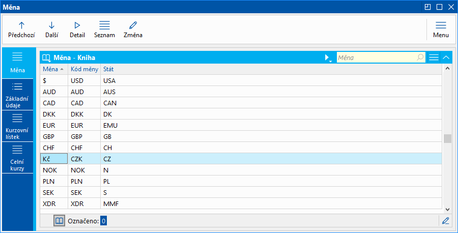 Obr.: Číselník Meny