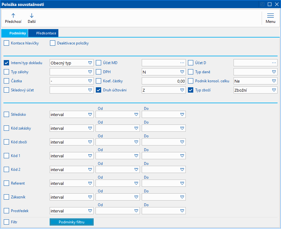 Obr.: Podmienka filtra Kontácia je prázdna