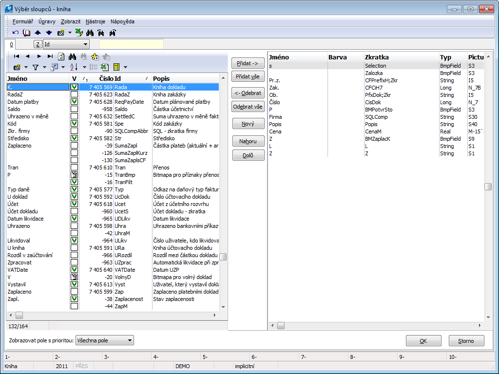 Kniha V knihe sú dáta zotriedené podľa primárneho kľúča (pri dokladoch Kniha - Obdobie - Číslo, pri Tovare Skratka1 atď.). Pokiaľ sú doklady členené do kníh, sú zobrazené iba dáta jednej knihy! Prepínanie medzi knihami sa realizuje spravidla klávesovou skratkou Alt+F10. |